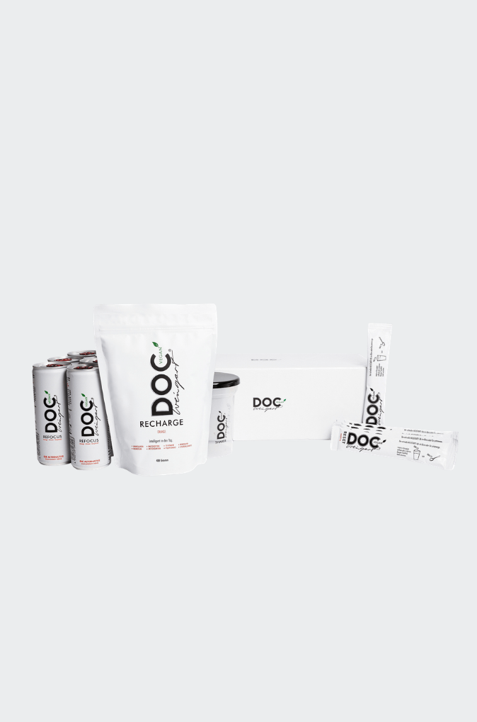Genau dafür gibt es das DOC SET – drei Produkte, die Deinen Tag von morgens bis abends absichern.